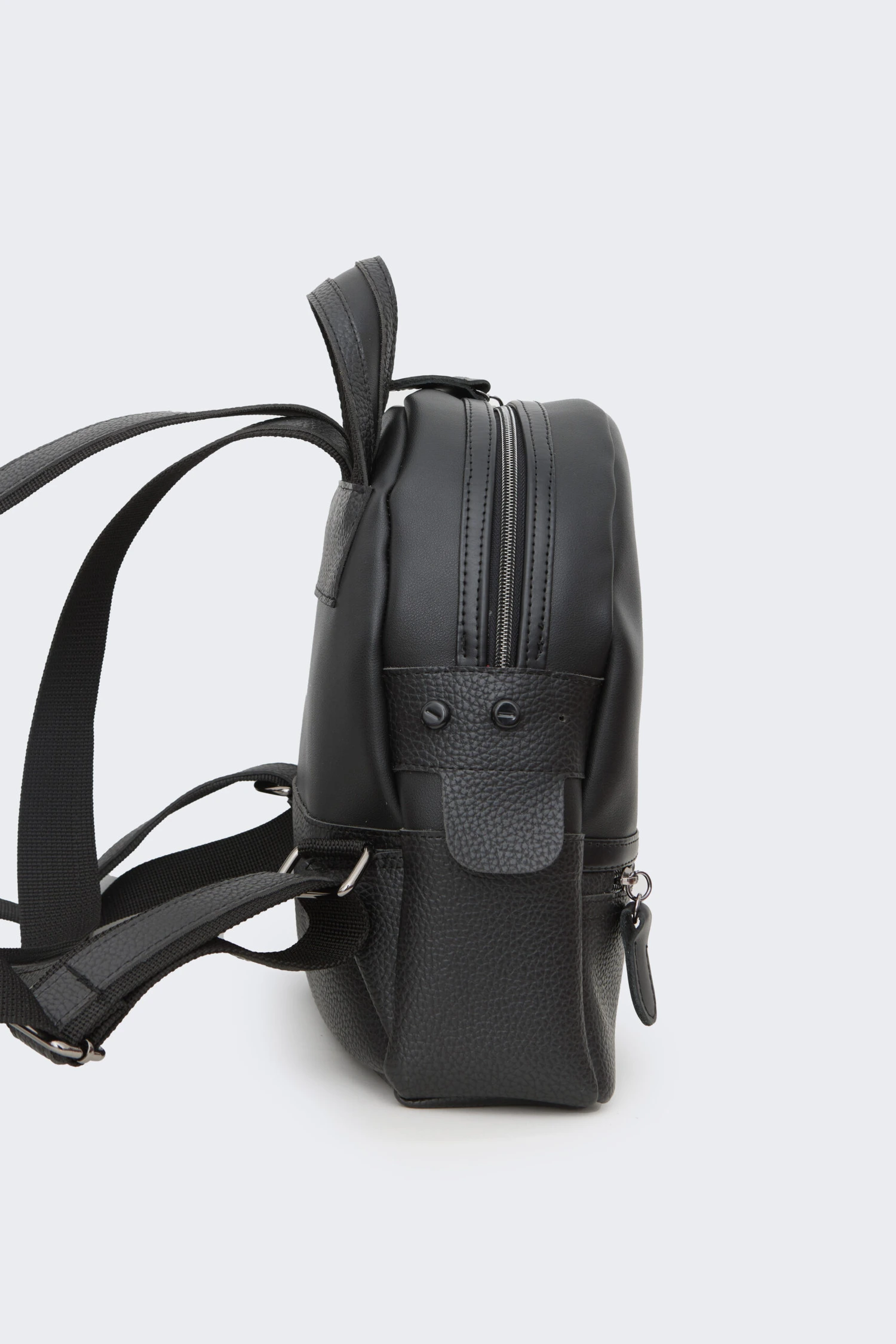 • Recycled artificial leather and quilted faux leather