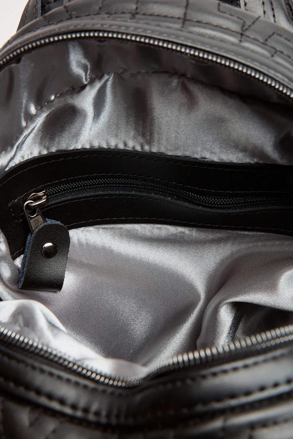 • Μεταλλικές λεπτομέρειες σε τόνους νικελίου και κλείσιμο με φερμουάρ