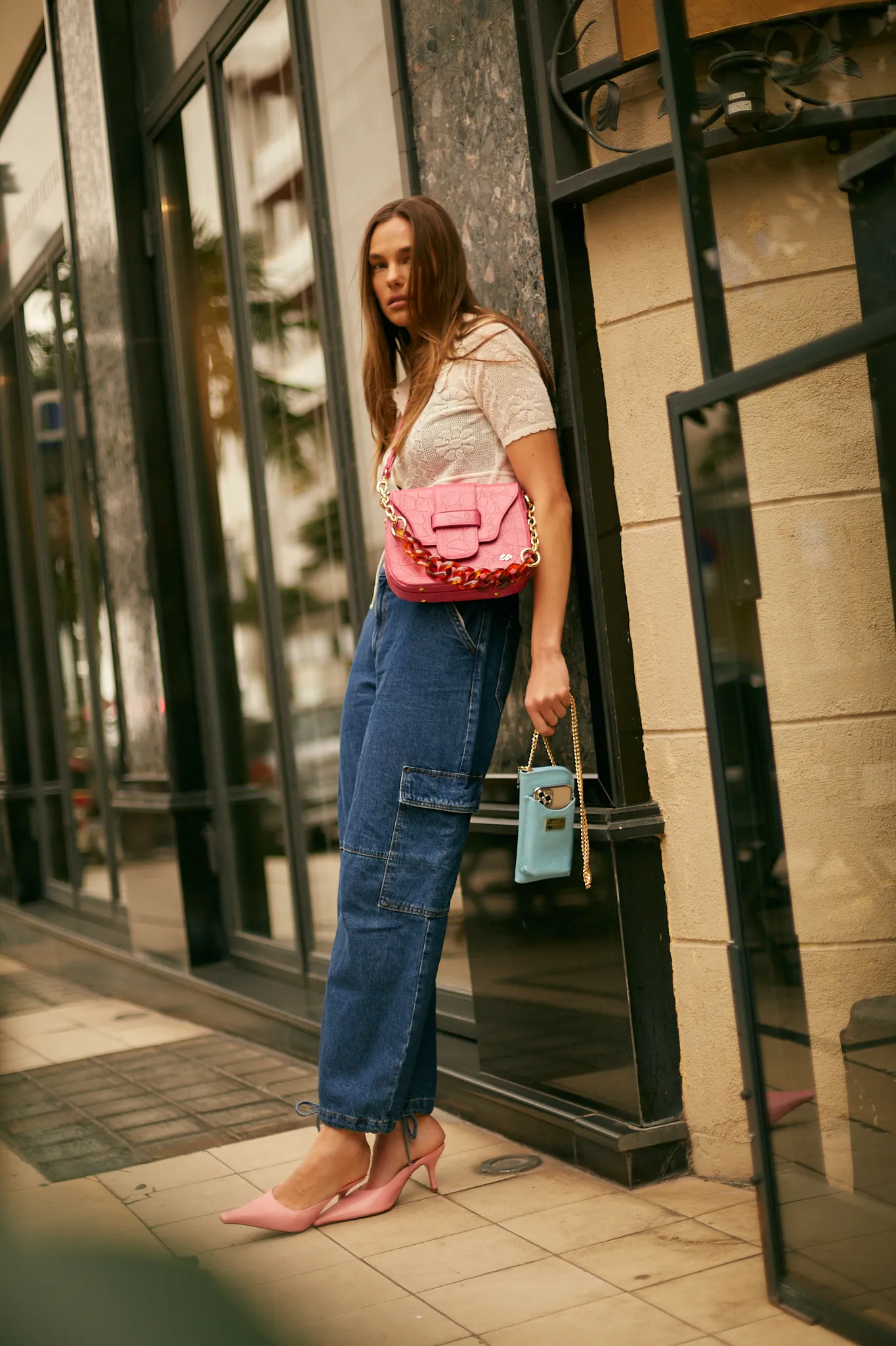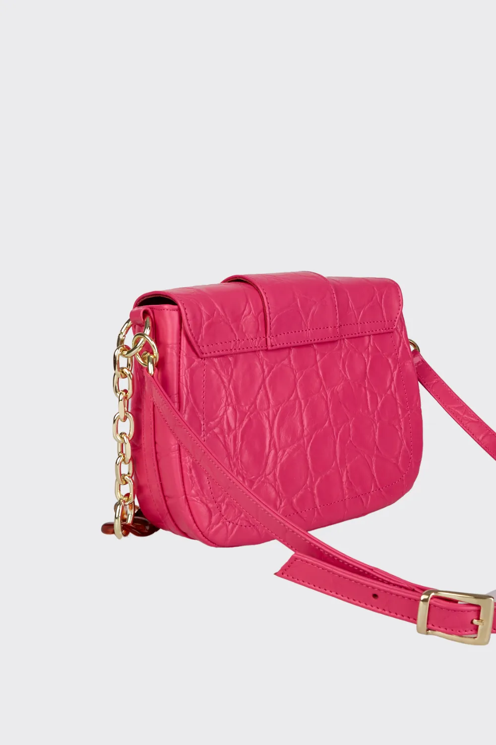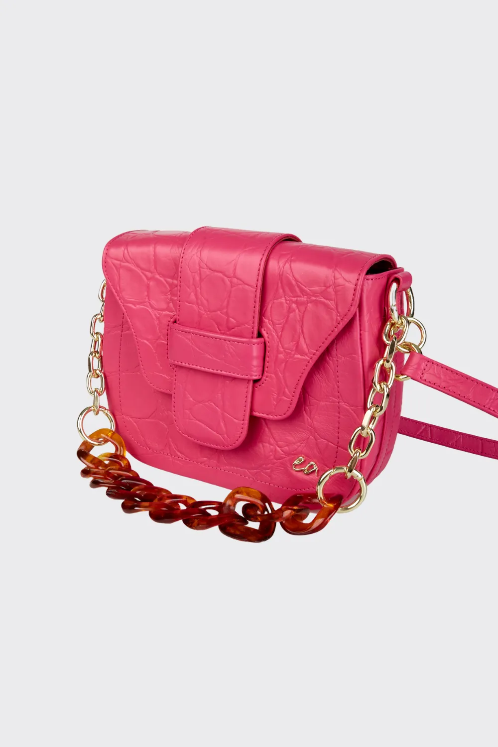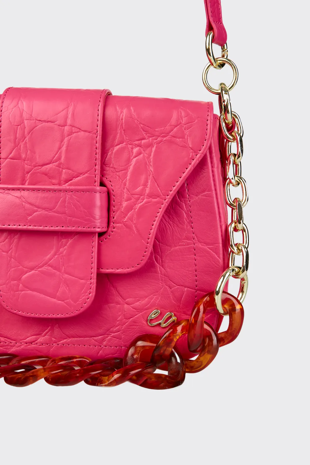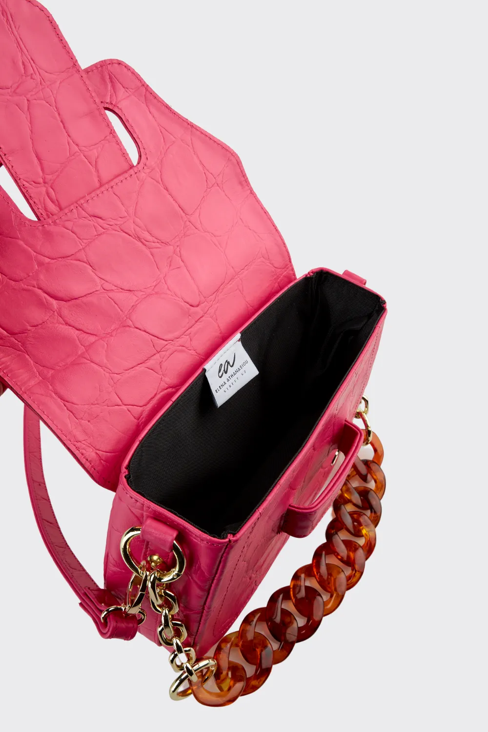 • Removable shoulder chain with metal and tortoiseshell accents