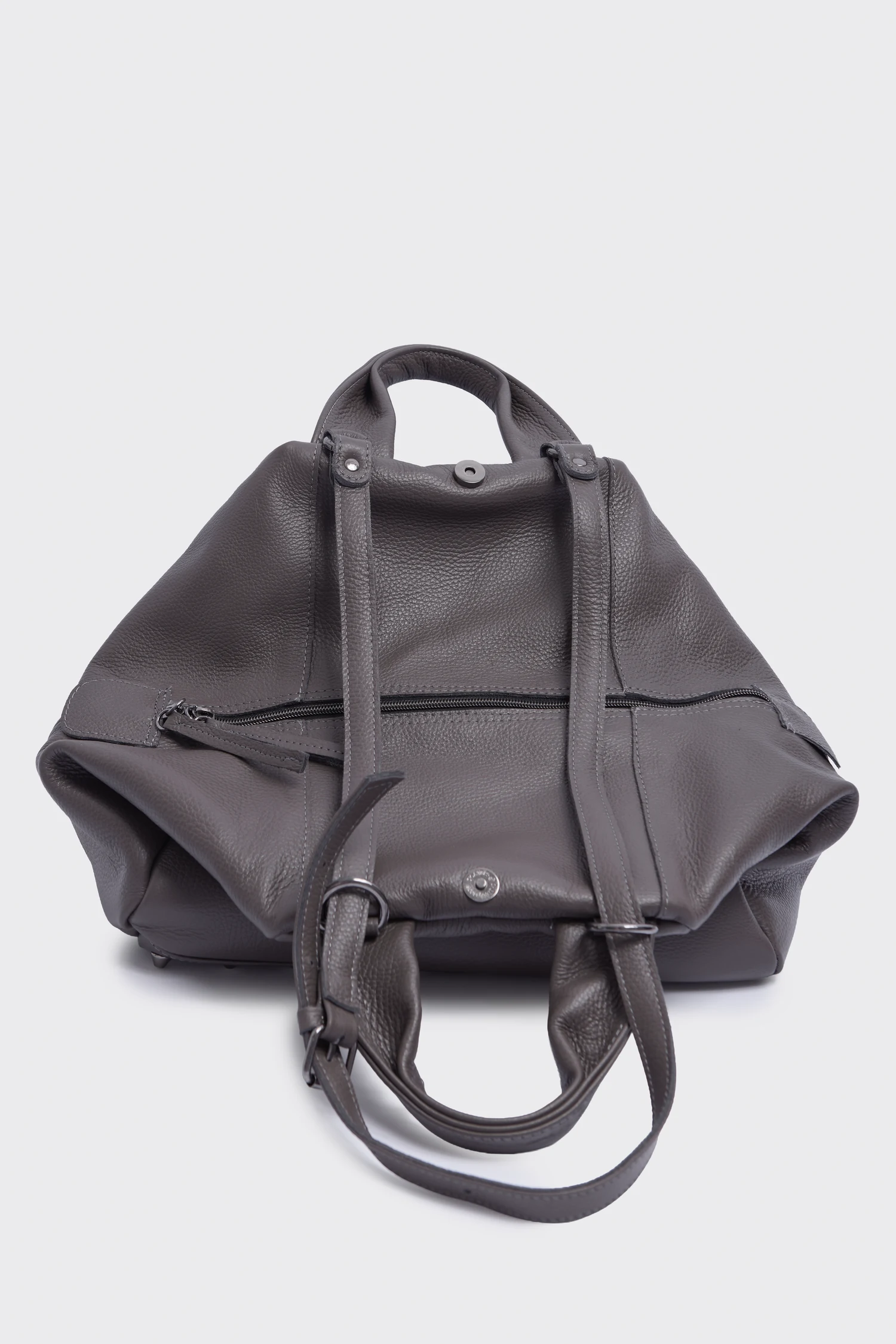 - Closes with zip and button on the top