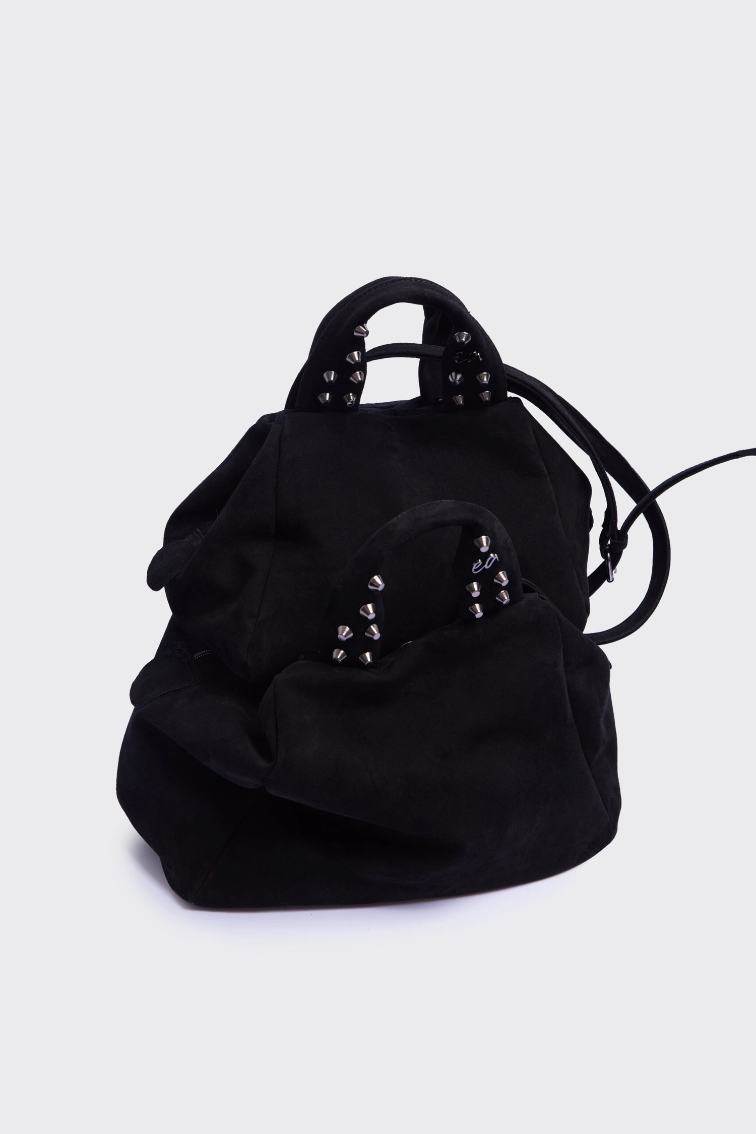 Bubble Bag Suede Τσάντα Χειρος Μαυρη Small