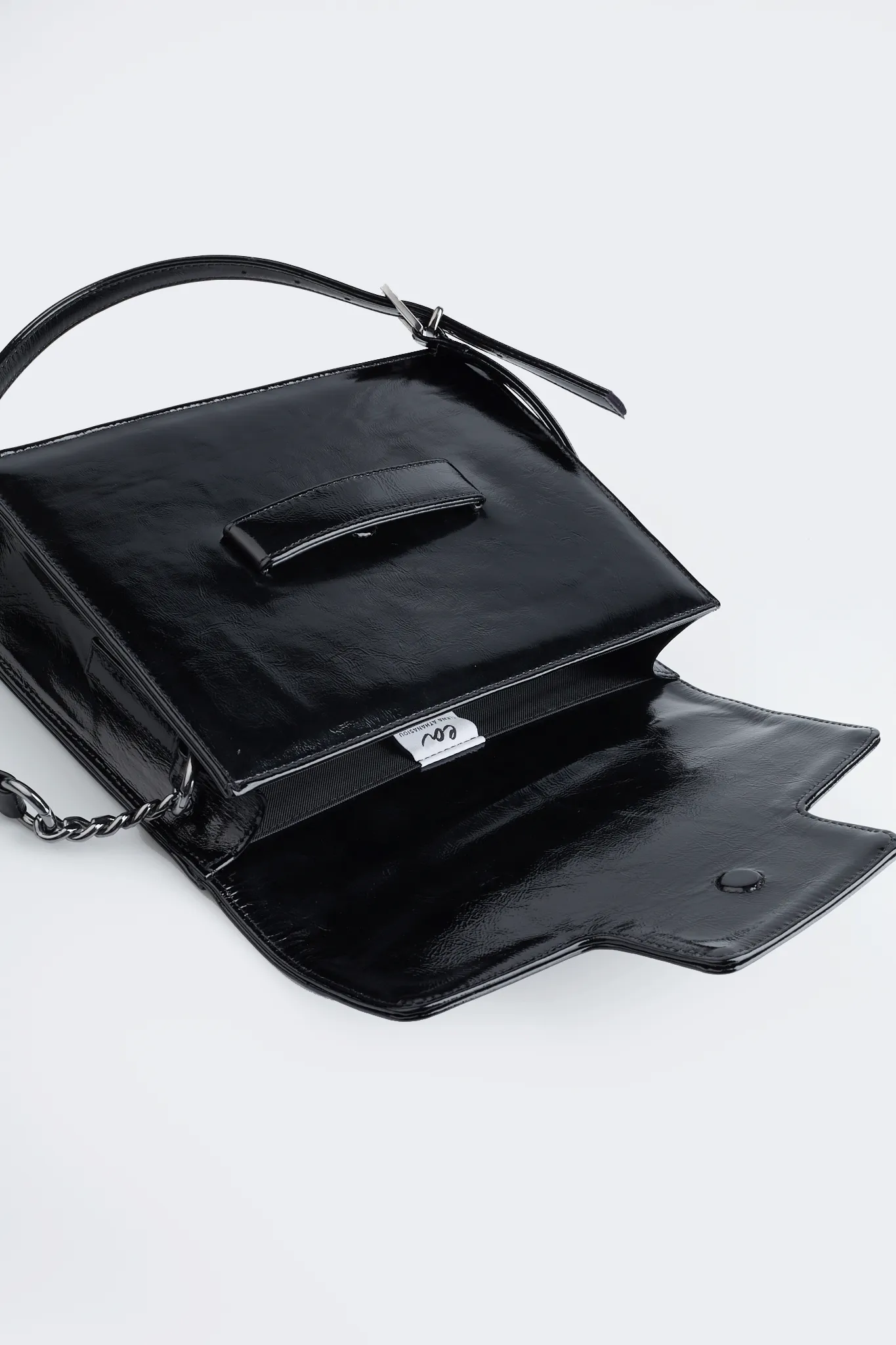 Cocktail Vinyl Τσάντα Ώμου Μαυρη Large