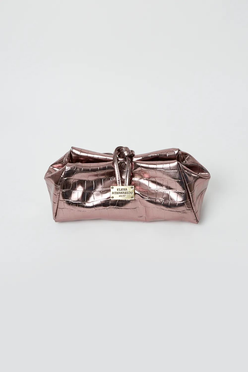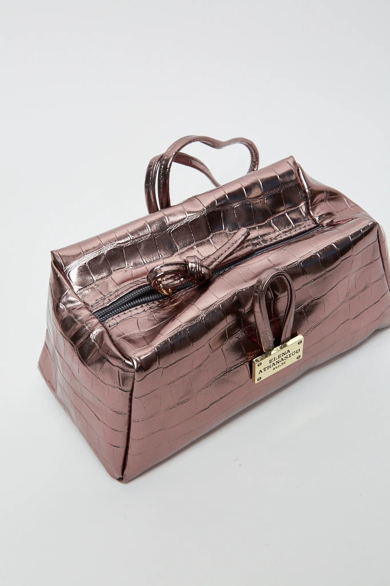 Lunchbag Croco Τσάντα Εξοδου Μεταλικο Γκρι