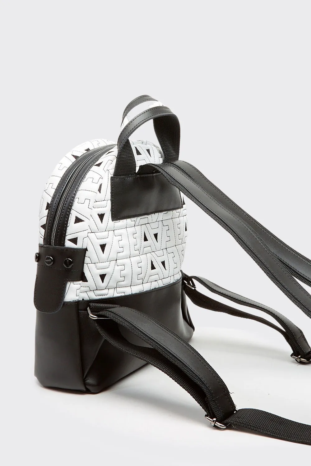 • Recycled artificial leather and quilted faux leather