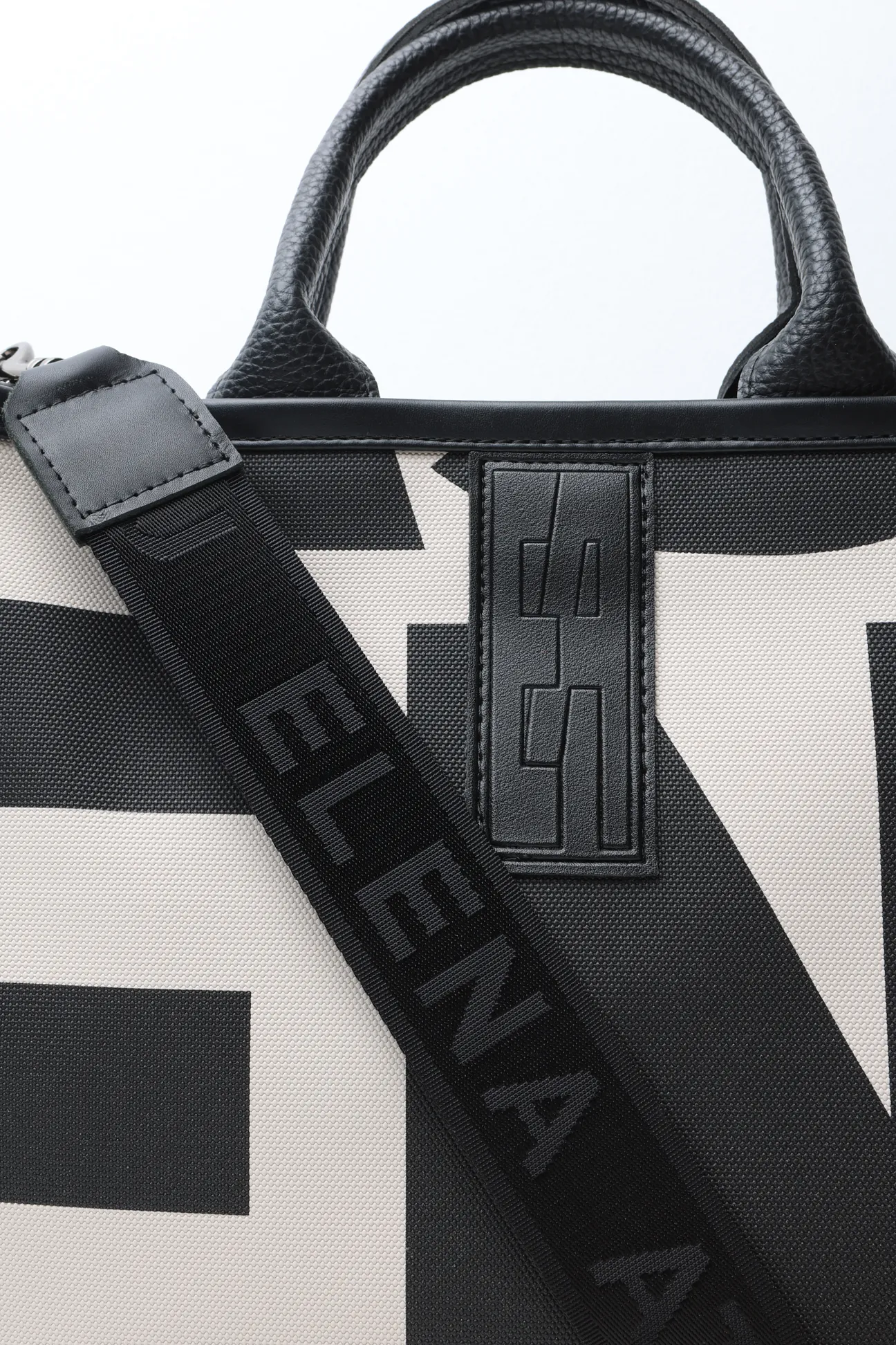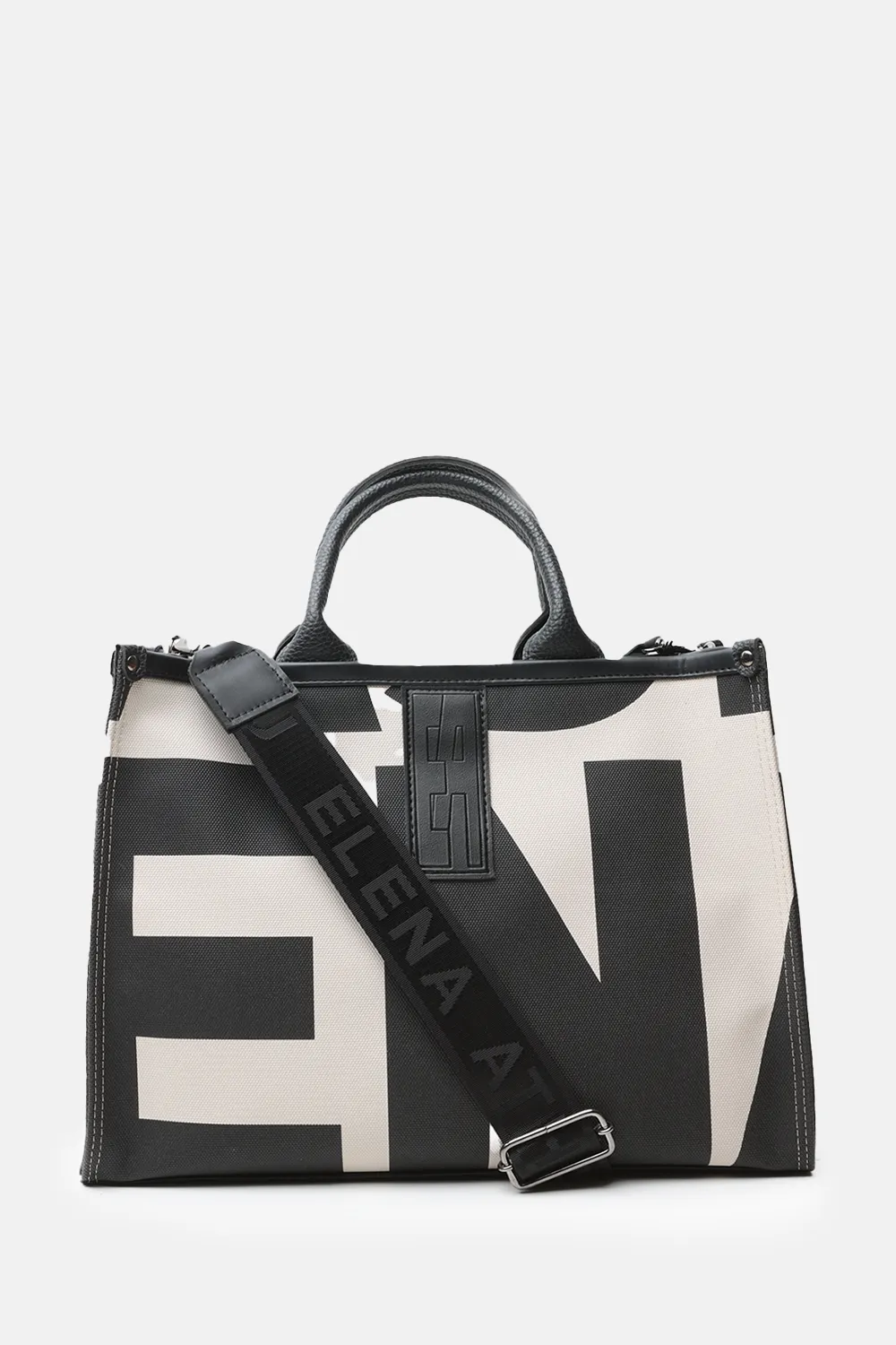 • Hand strap and crossbody strap with nickel metal details