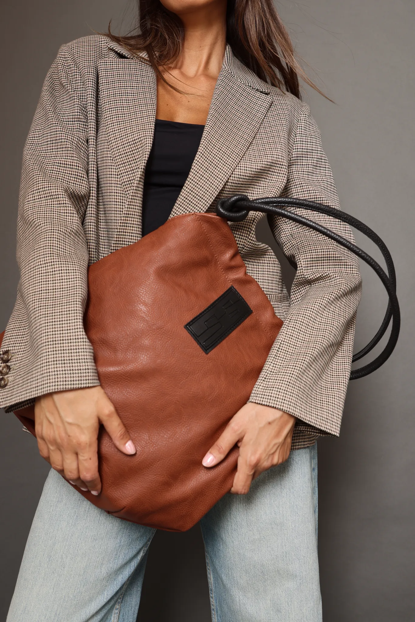 • Strap with black designer logo on the front