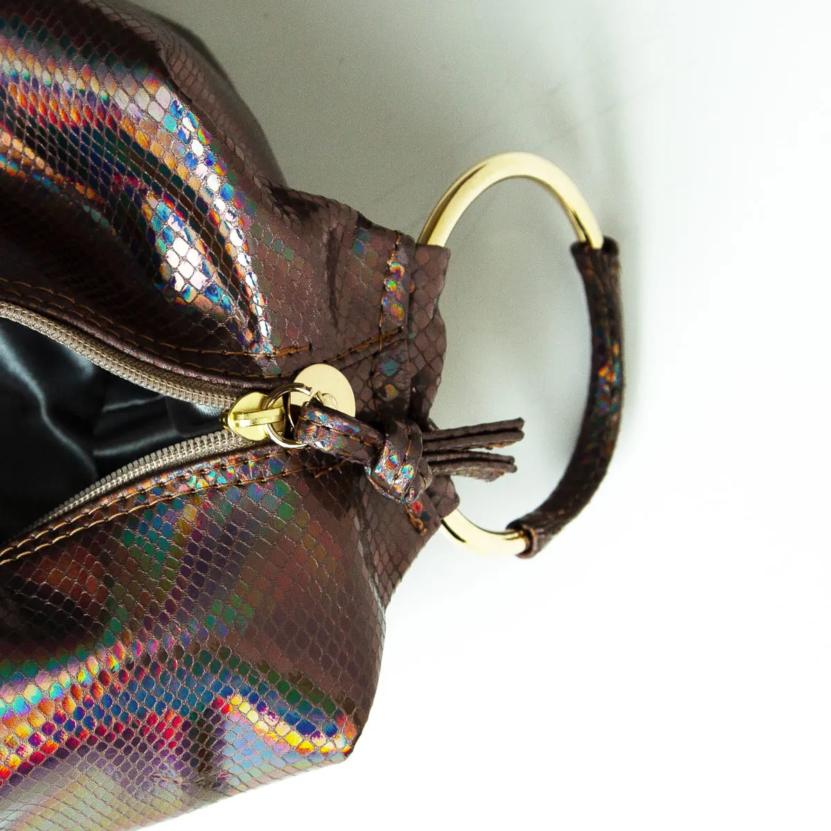 • Γκρι σατέν επένδυση στο εσωτερικό και κλείσιμο με φερμουάρ στο επάνω μέρος